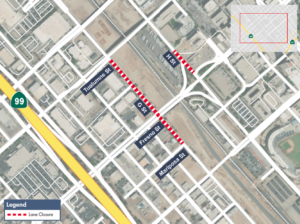 - Intermittent lane closures along H Street, north Mariposa Street.