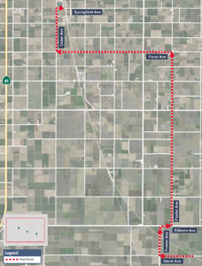 • Materials will be transported west on Davis Avenue, north on Fowler Avenue, east on Elkhorn Avenue, north on Fowler Avenue, west on Floral Avenue, north on Cedar Avenue, then east on Springfield Avenue to a high-speed rail construction site.