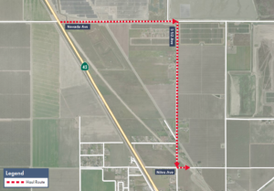 Intermittent traffic impacts along Nevada Avenue, Avenue 5 1/2, and Niles Avenue in Tulare County to transport materials to a high-speed rail construction site.