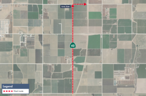 Kings County, Calif. – The California High-Speed Rail Authority (Authority), in cooperation with design-build contractor Dragados Flatiron Joint Venture (DFJV), announces intermittent traffic impacts along State Route 43 and Iona Avenue in Kings County to transport materials to a high-speed rail construction site. Hauling is scheduled from 6 a.m. to 6 p.m. starting Sunday, March 15, through Thursday, April 30, 2026.