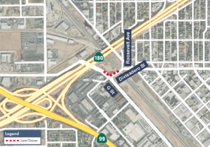 - Lane closure along Divisadero Street, between G Street and Roosevelt Avenue.