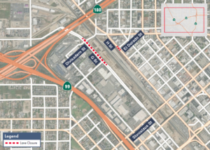- Intermittent lane closures along G Street between Divisadero and Stanislaus streets.