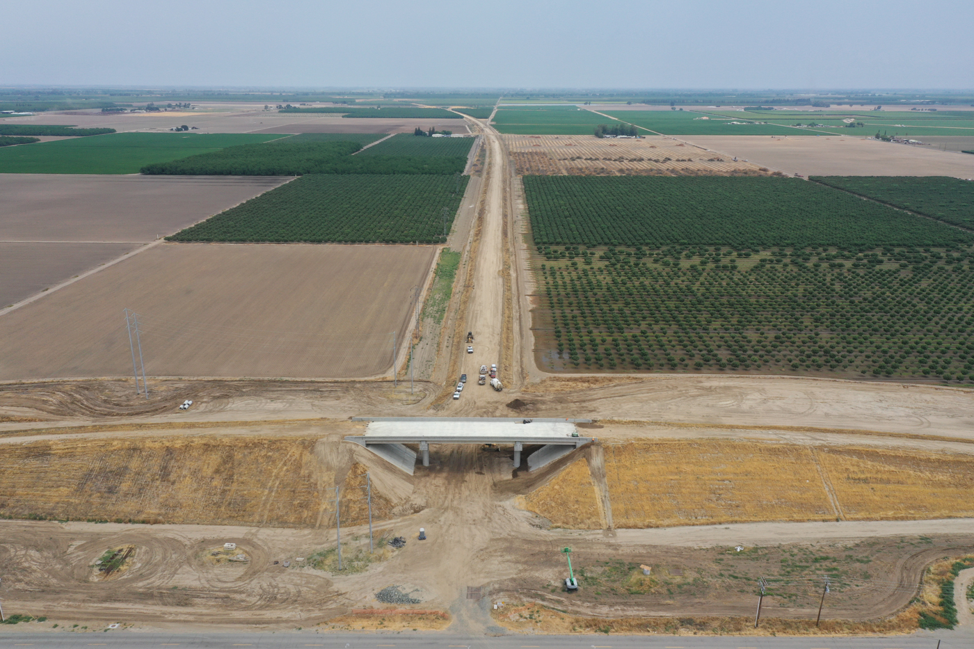 Located north of the city of Hanford and designed and constructed by Dragados-Flatiron Joint Venture to take traffic over the future high-speed rail tracks, the Flint Avenue overcrossing is the latest high-speed rail structure to be completed and opened to traffic in the Central Valley.