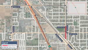 Intermittent road closures along West Avenue, between University and Weber avenues in Fresno. Work will include construction of a high-speed rail grade separation.