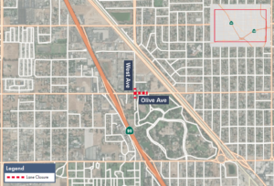 Fresno, Calif. – The California High-Speed Rail Authority (Authority), in cooperation with design-build contractor Tutor-Perini / Zachry / Parsons (TPZP), announces lane and sidewalk closures along Olive and West avenues in Fresno for utility work. Work is scheduled from 9 a.m. to 4 p.m. starting Monday, Feb. 23, thru Friday, Feb. 27, 2026.
