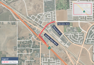 • Intermittent lane closures along Herndon Avenue, between the northbound SR 99 to Herndon Avenue off-ramp and Riverside Drive;