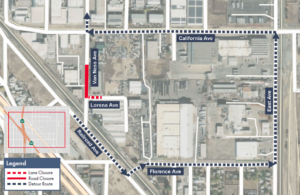 - Traffic going southbound on Railroad Avenue will be detoured east on Florence Avenue, north on East Avenue, then west on California Avenue to Van Ness Avenue.