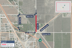 KINGS COUNTY, CALIF. – The California High-Speed Rail Authority (Authority), in cooperation with design-build contractor Dragados-Flatiron Joint Venture (DFJV), announces a road closure along Fifth Avenue, between Niles and Waukena/Orange avenues in Kings County for ongoing work on a high-speed rail grade separation. Work is scheduled from 7 a.m. to 6 p.m. on Tuesday, Dec. 9, 2025.