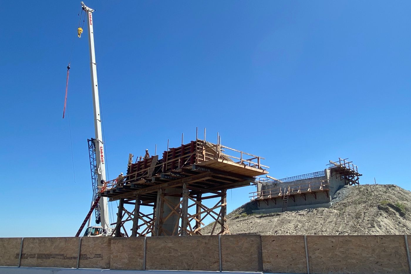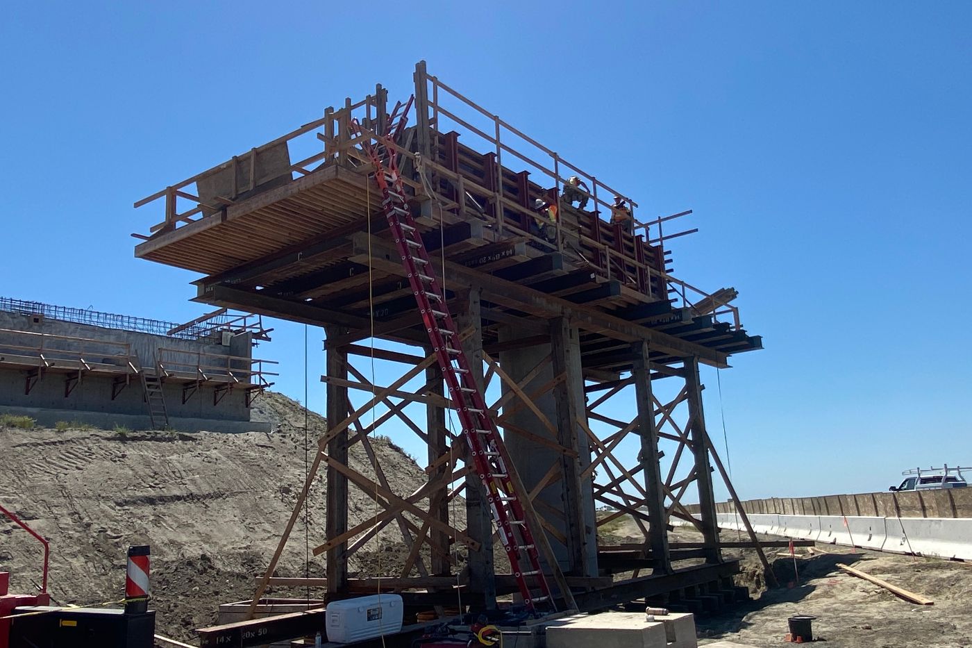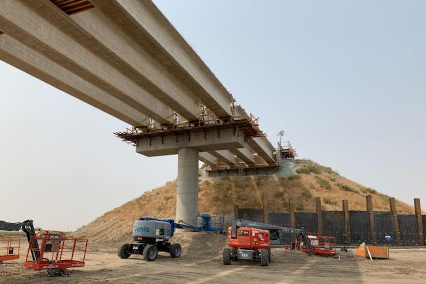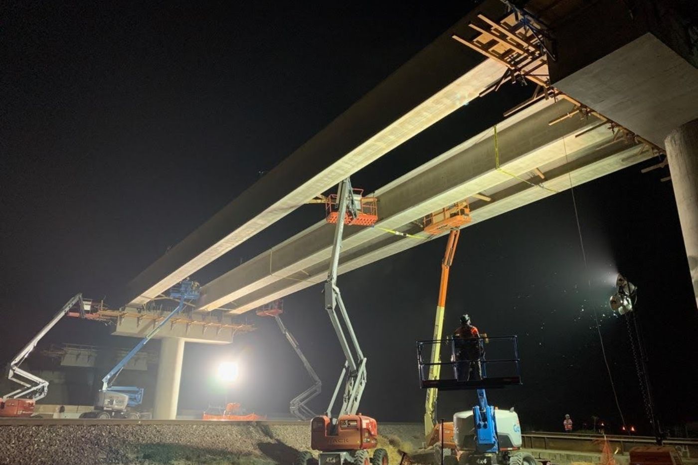 The structure is comprised of 20 pre-cast concrete girders ranging from 59 and 141 feet long, all of which were manufactured by contractor Dragados-Flatiron Joint Venture in Hanford, Calif.