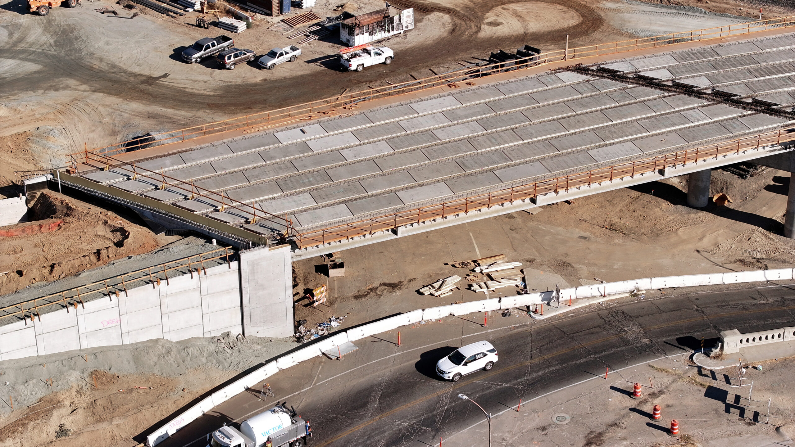Work began on the Belmont Avenue Grade Separation in 2022 but remained open to traffic throughout construction. The four-span bridge will now take traffic and pedestrians over the Union Pacific Railroad and high-speed rail tracks safely. The bridge itself spans more than 611 feet long and 62 feet wide.