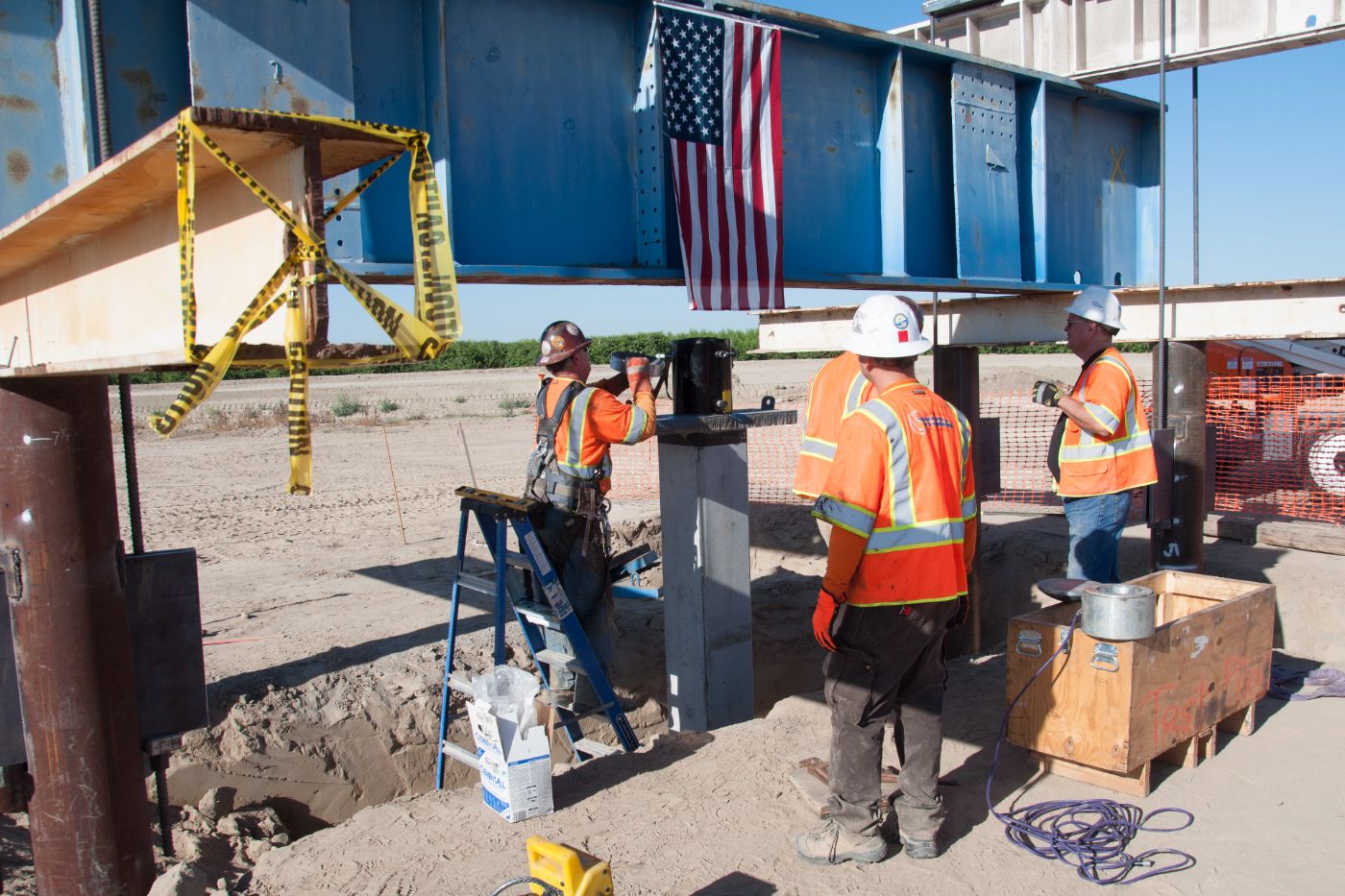 This grade separation, which will take traffic over the future high-speed rail lines and is designed and constructed by Dragados-Flatiron/Joint-Venture, is located between Fowler Avenue and State Route 43 in Fresno County. The overcrossing spans approximately 416 feet long and 32 feet wide and is made up of nearly 1,600 cubic yards of concrete and 400,000 pounds of rebar.