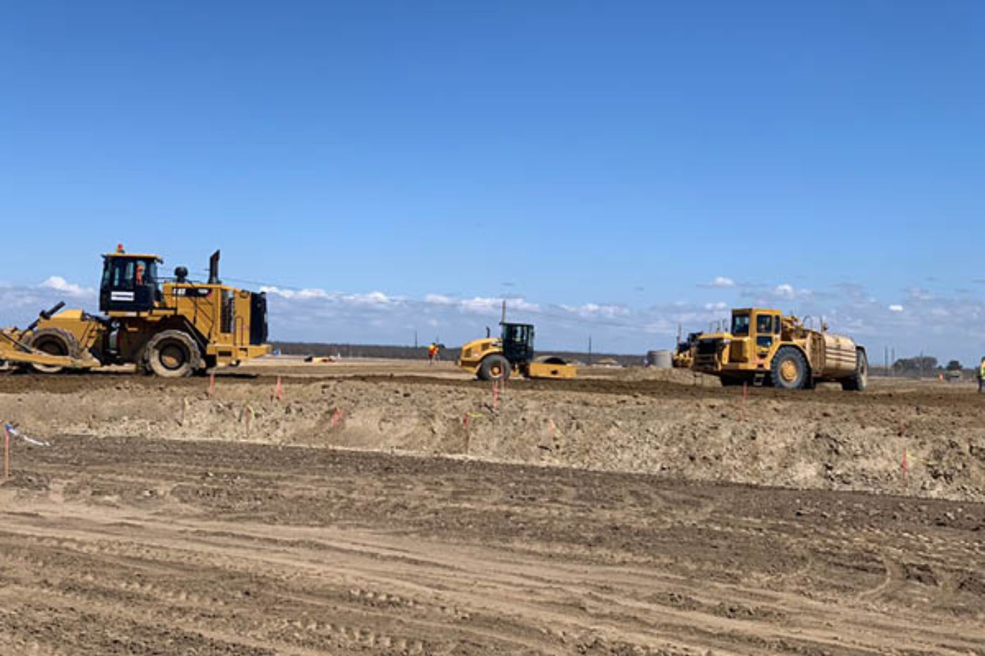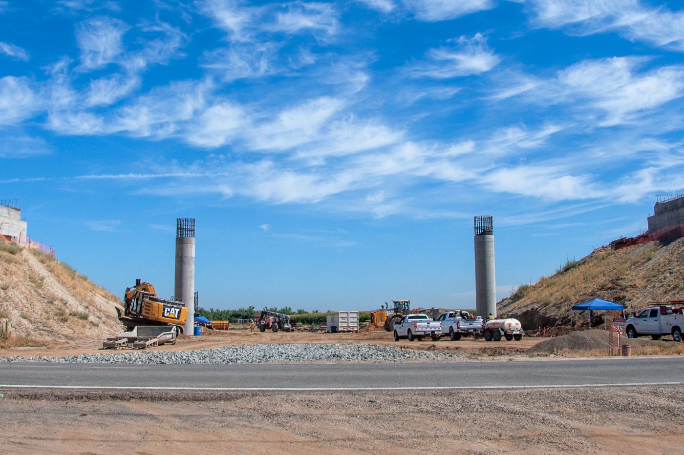 On Construction Package 2-3, crews continue construction of the Excelsior Avenue overcrossing north of the town of Hanford in Kings County. The two abutments are largely complete, and two piers have been poured and are awaiting construction of the pier caps that will hold girders for the crossing’s superstructure. The Excelsior Avenue overcrossing will take traffic over the future high-speed rail line.
