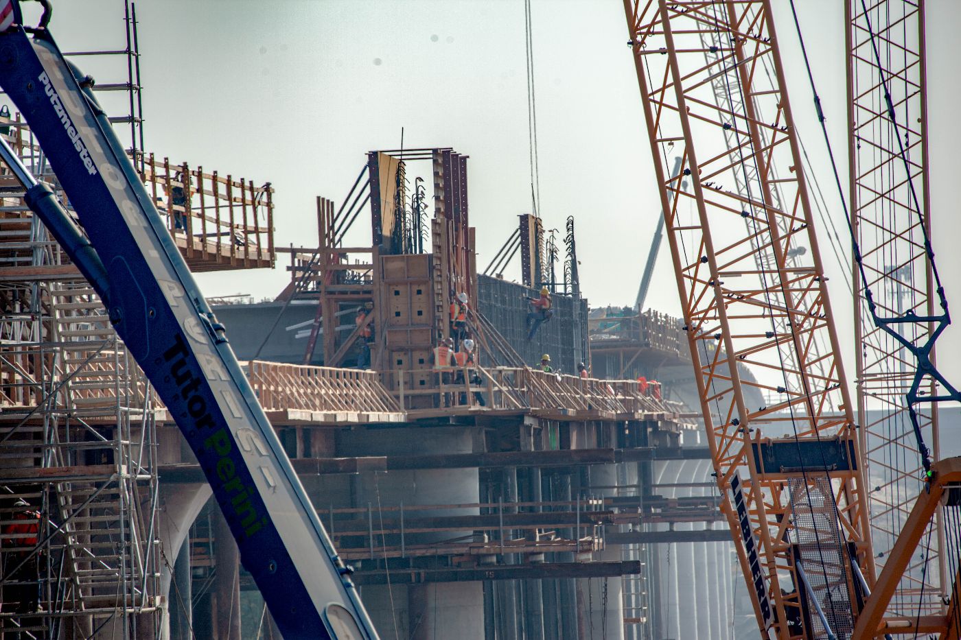 In north Fresno at the San Joaquin River Viaduct, crews have begun placing concrete to form the center spans of the viaduct’s signature arches – representing the entrance into the City of Fresno. Crews have also begun stripping the falsework of the arches on either side of the viaduct.
