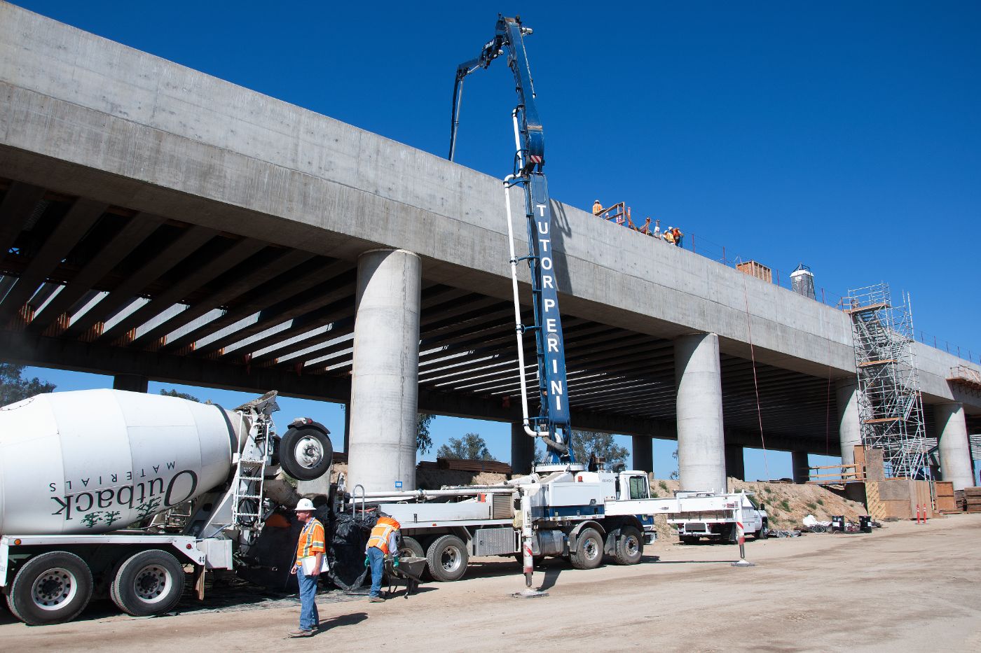 At the San Joaquin River Viaduct, workers continue pouring concrete for the pergola deck that will carry high-speed trains over the existing rail line. On the south bank of the San Joaquin River, crews are finishing up construction of pier caps to tie together the few remaining support columns, while on the north bank of the river, the final pier cap has been poured. The cast-in-place construction of the deck follows completion of the pier caps, tying all the individual components of the structure together. The completed viaduct will form one of the largest structures on this first phase of the high-speed rail project.