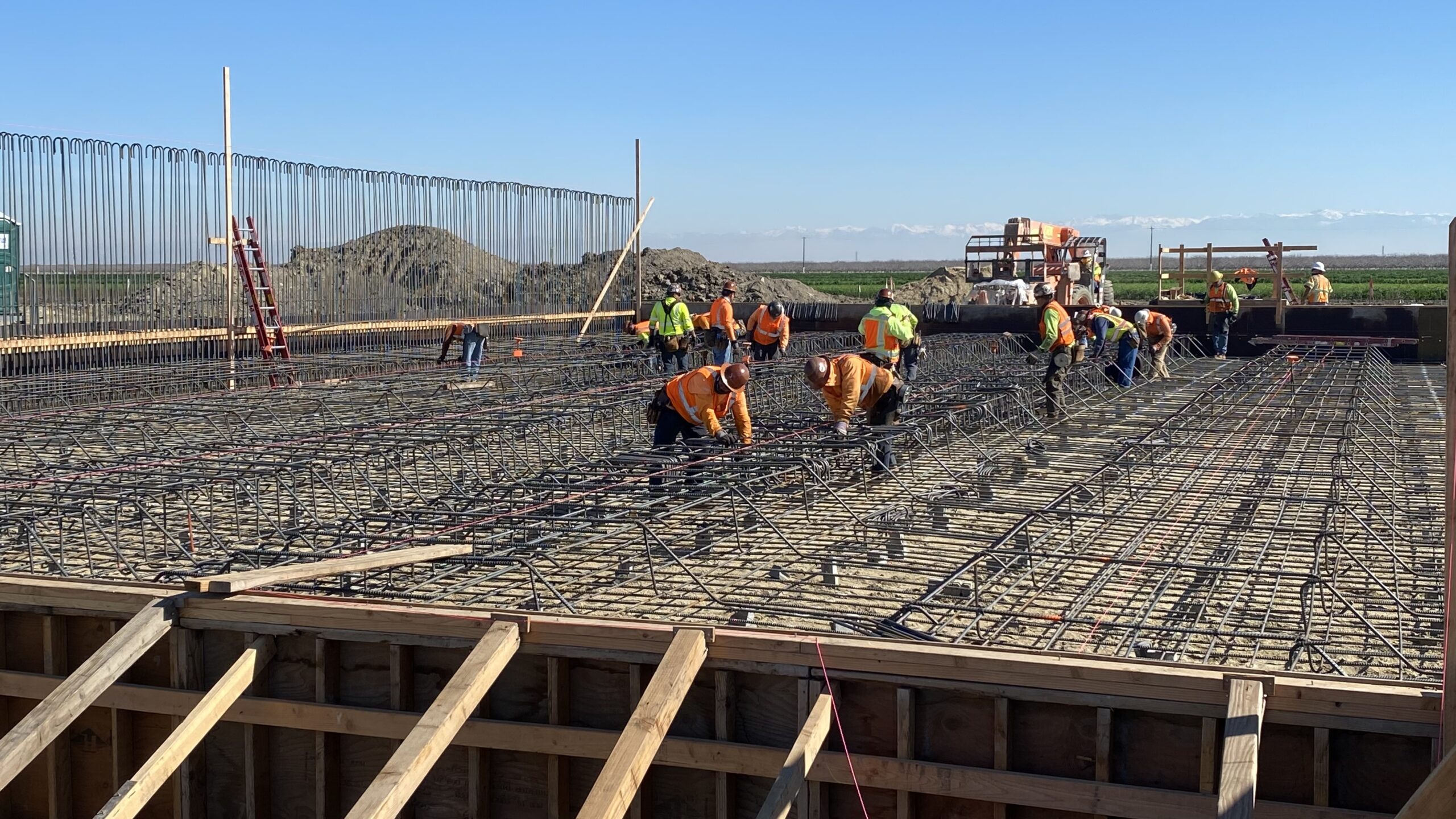 On the north approach of the structure, crews are forming the tub girder diaphragms, the portion of the structure that helps connect tub girders to each other at the bent caps, as well as connecting and sealing each adjacent tub girder to each other. When complete, the Tule River Viaduct and Pergola will span more than 3,573 feet long and will take high-speed trains over Tule River and the BNSF railroad tracks.